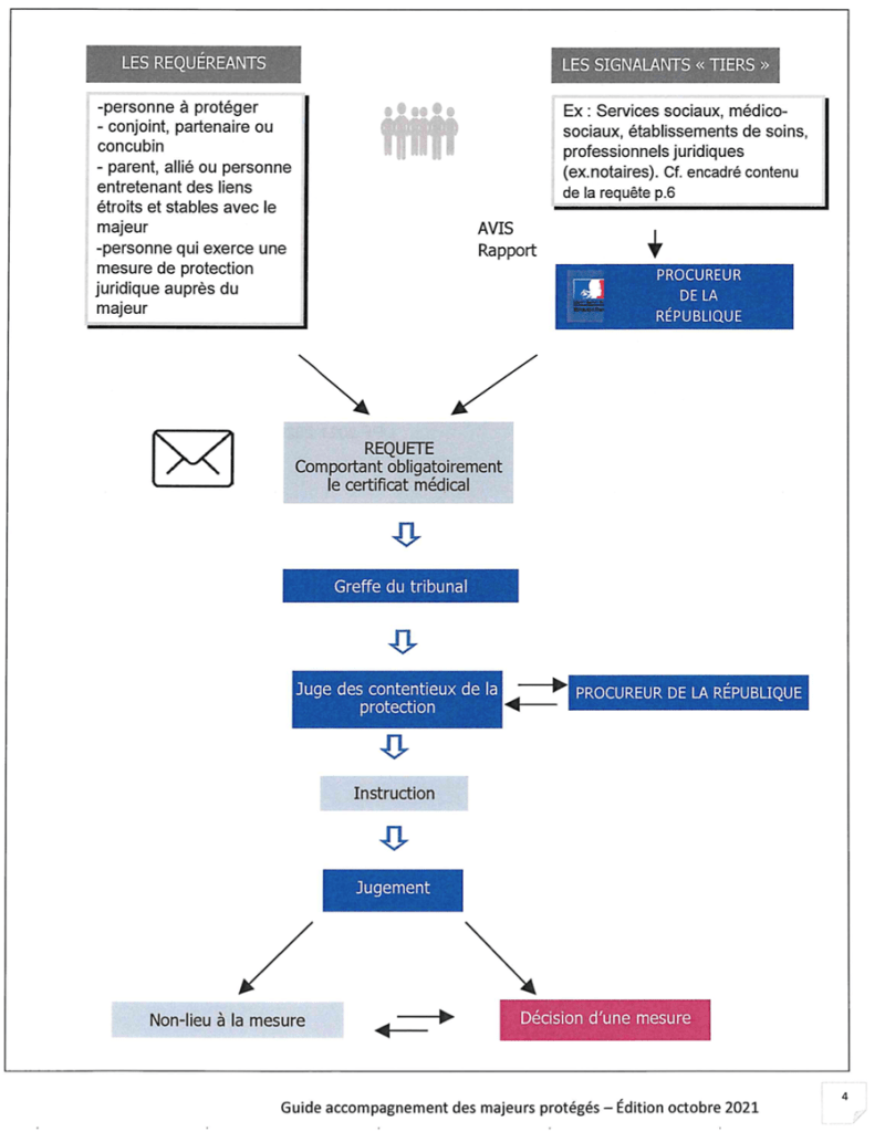 Ce dossier doit ensuite être envoyé ou déposé au greffe du juge des contentieux de la protection du tribunal judiciaire dont dépend le lieu de résidence du majeur à protéger.